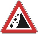 Afërsinë e vendit ku ka rrezik nga rrëshqitja e gurëve në rrugë.